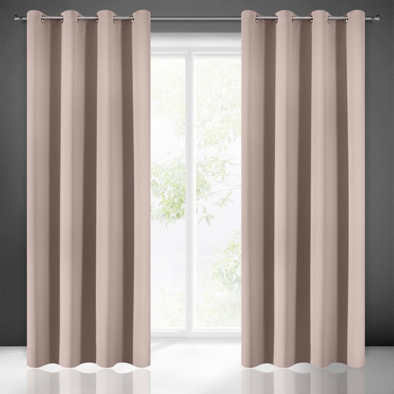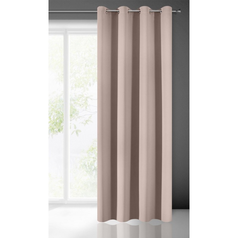 Zasłona zaciemniająca z mięsistej tkaniny typu blackout. Doskonała izolacja cieplna i akustyczna wnetrza. Jednokolorowa zasłona o minimalistycznym designie. szerokość: 140 cm, długość: 250 cm, kolor: ciemnobeżowy, Gramatura: 210 GSM, Skład: 100%...