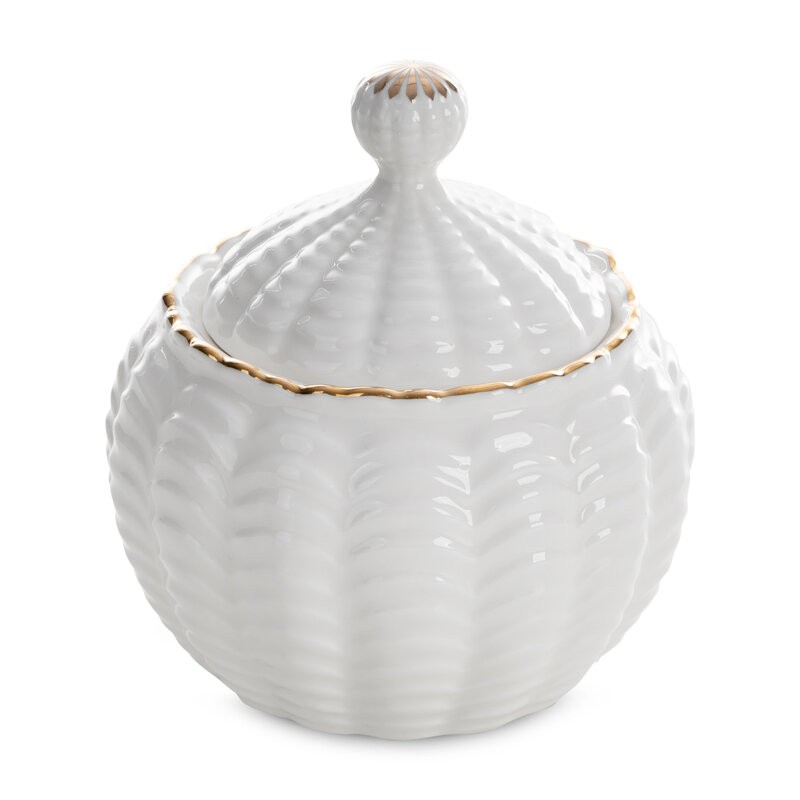 Pojemnik dekoracyjny szerokość: fi 10 cm, długość: 11 cm, kolor: biały, Skład: glinka ceramiczna SZT.2