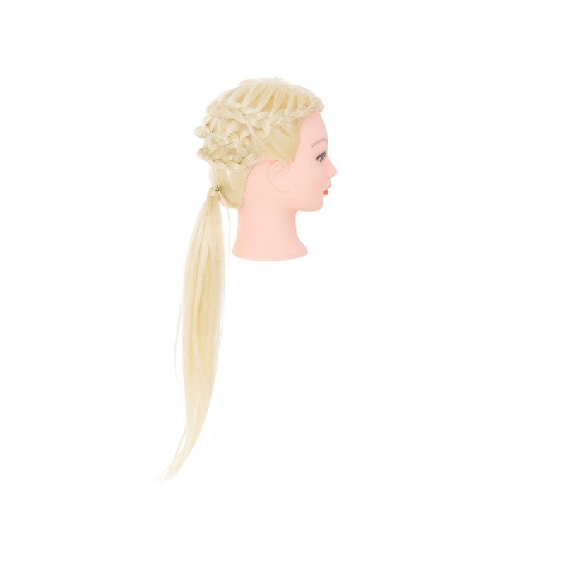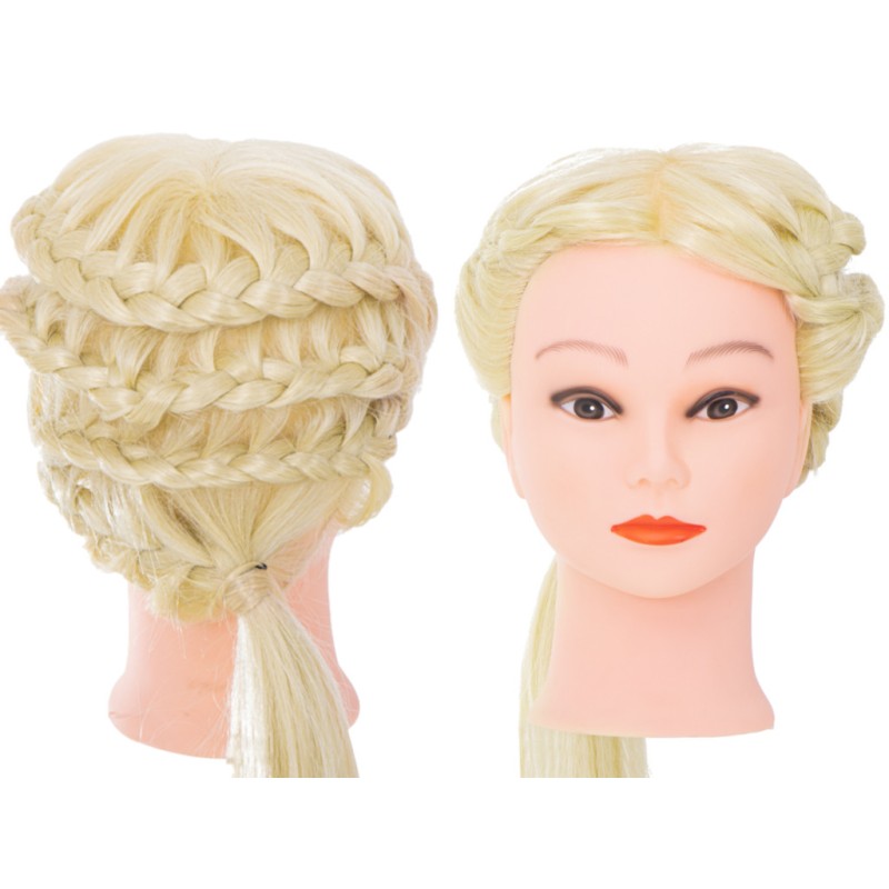 Głowa fryzjerska treningowa z naturalnymi włosami. Można na niej wykonać wiele łatwiejszych jak i bardziej zaawansowanych fryzur. Model nie zawiera uchwytu w zestawie. Kolor włosów: blond. Zapakowane w foliowe opakowanie.