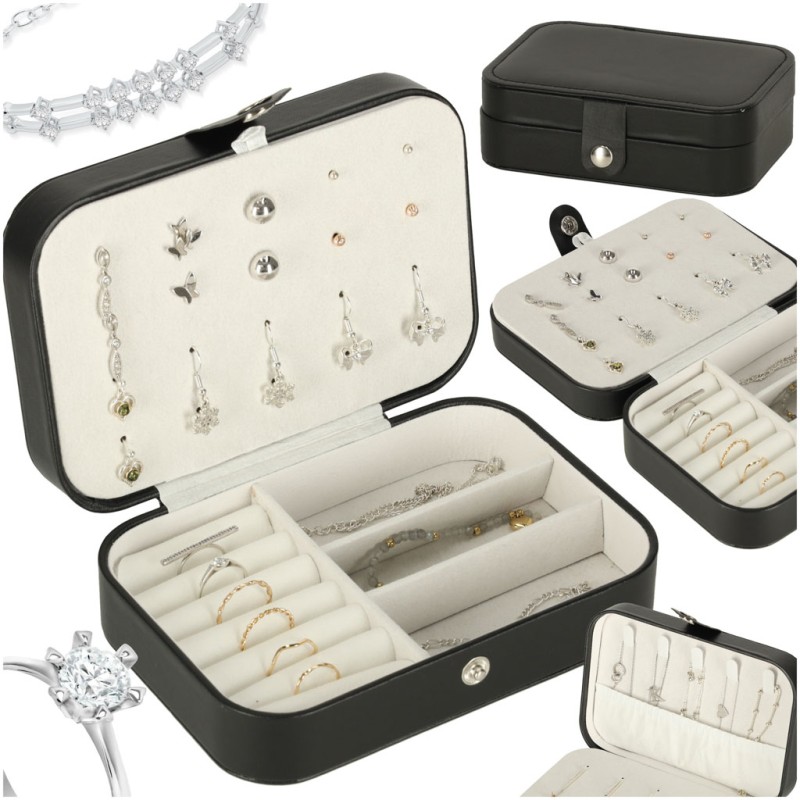 • Poręczne wymiary i funkcjonalność - kompaktowa szkatułka na biżuterię (16 × 11 × 5 cm) idealna do torebki, walizki i codziennego użytku, doskonała także jako element toaletki