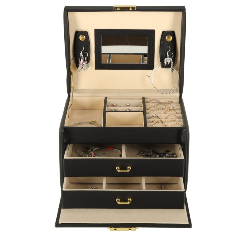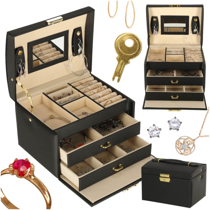 Ta duża szkatułka na biżuterię zamykana na klucz jest idealna, jeśli posiadasz dużą kolekcję biżuterii. Dzięki przemyślanemu projektowi możesz przechowywać kosztowności w pełnym porządku - każda bransoletka, zegarek czy kolczyki znajdą własne miejsce. To idealne rozwiązanie dla osób, które chcą mieć wszystkie elementy biżuterii uporządkowane i zawsze pod ręką.