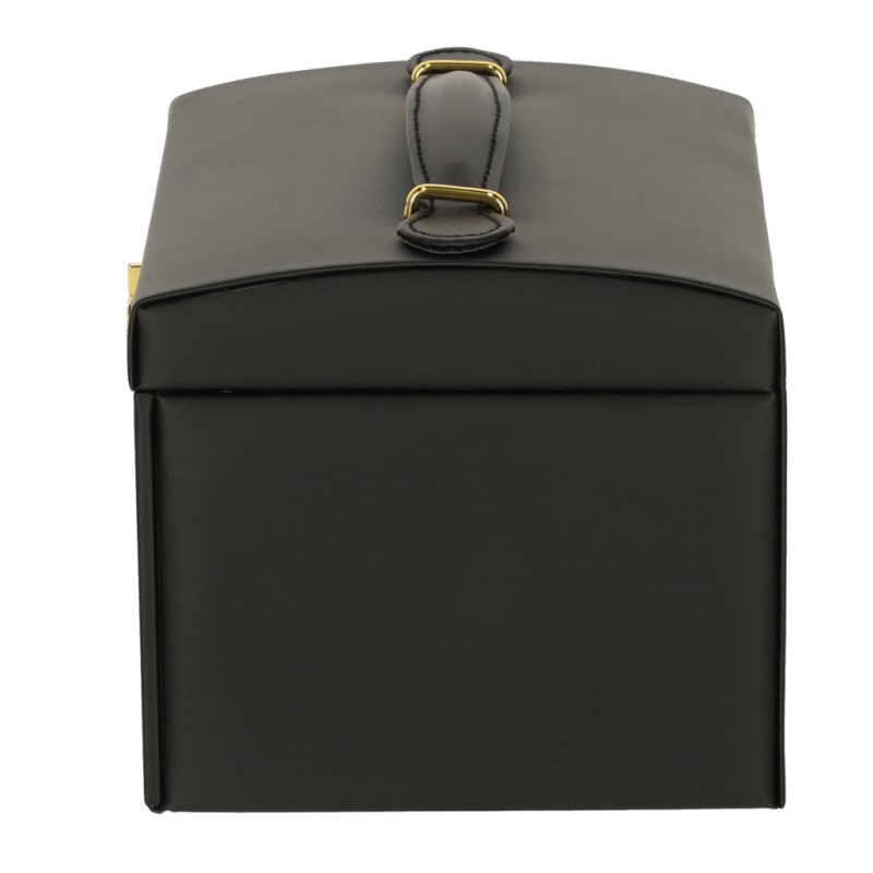 Ta czarna, minimalistyczna szkatułka na biżuterię łączy prostotę z ponadczasową elegancją. Stylowy design sprawia, że zawsze wygląda modnie i doskonale podkreśla luksusowy charakter. Dodatkowo ta stylowa szkatułka jest nie tylko funkcjonalna, ale też stanowi piękny dodatek w pomieszczeniu. Wyłożone wnętrze szkatułki zostało wykonane z miękkiego materiału, który chroni każdy element biżuterii przed zarysowaniami. Materiał zapewnia biżuterii bezpieczeństwo nawet podczas transportu, a estetycznie wyściełana szkatułka prezentuje się wyjątkowo elegancko.