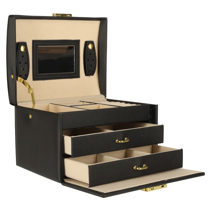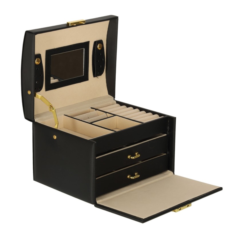 Szkatułka z lusterkiem pozwala szybko i wygodnie dopasować dodatki, bez konieczności korzystania z osobnego lusterka. Taka stylowa kasetka na biżuterię doskonale sprawdzi się podczas codziennego przechowywania biżuterii. Duży kuferek posiada także uchwyt, dzięki czemu można łatwo go przenosić, dodatkowo jest lekki i poręczny, co czyni go praktycznym rozwiązaniem dla każdej miłośniczki biżuterii.