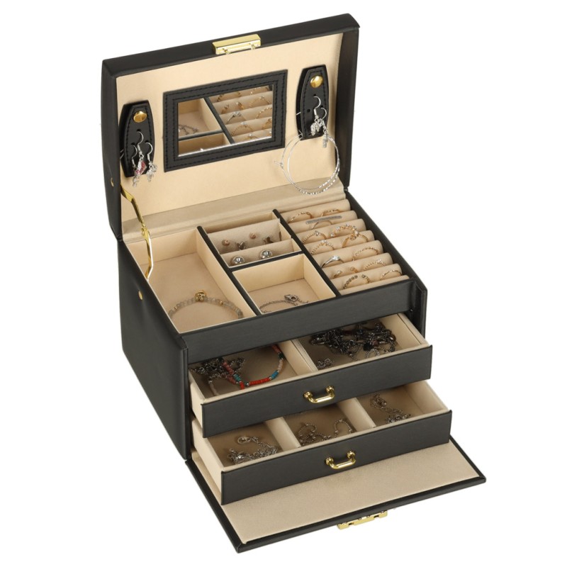 KUFEREK NA BIŻUTERIĘ - STYLOWA KASETKA Z LUSTERKIEM, SZUFLADKAMI I PRZEGRÓDKAMI