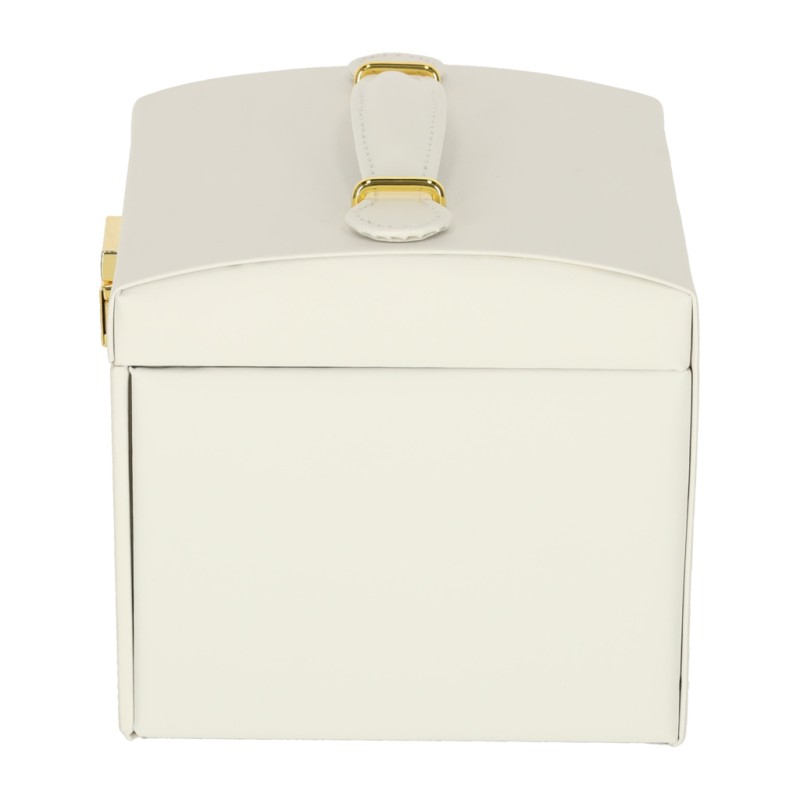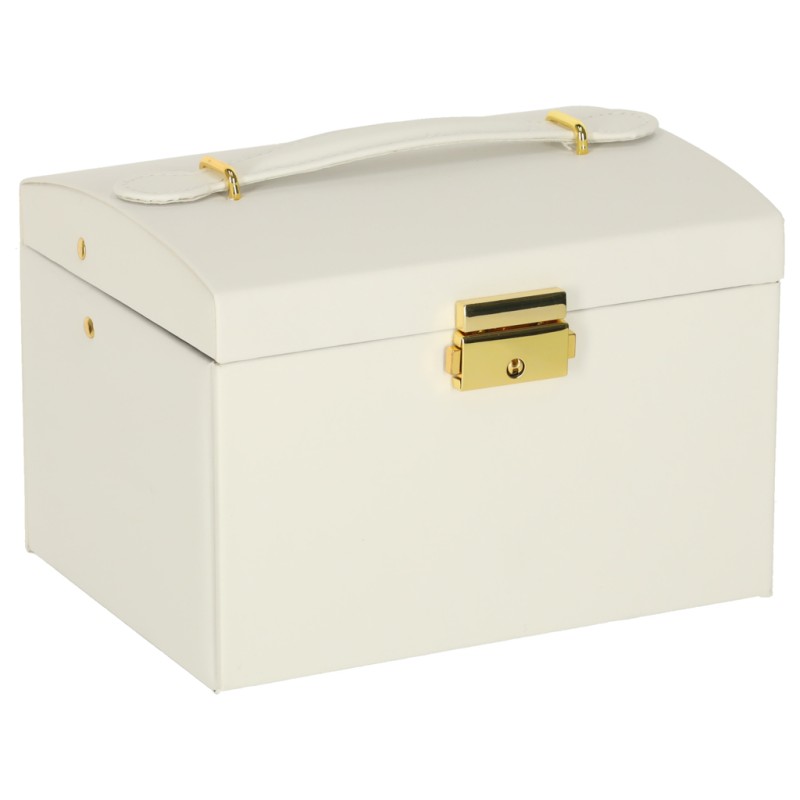 Dlatego warto mieć elegancki kuferek na biżuterię, który nie tylko pomieści całą osobistą kolekcję biżuterii, ale też zabezpieczy każdy element biżuterii przed zarysowaniami i przypadkowym zgubieniem. Taka stylowa szkatułka na biżuterię z lusterkiem sprawia, że ulubione pierścionki, kolczyki, bransoletki i łańcuszki są zawsze uporządkowane, bezpieczne i gotowe do założenia, a przy tym stanowi wyjątkową ozdobę każdej toaletki.