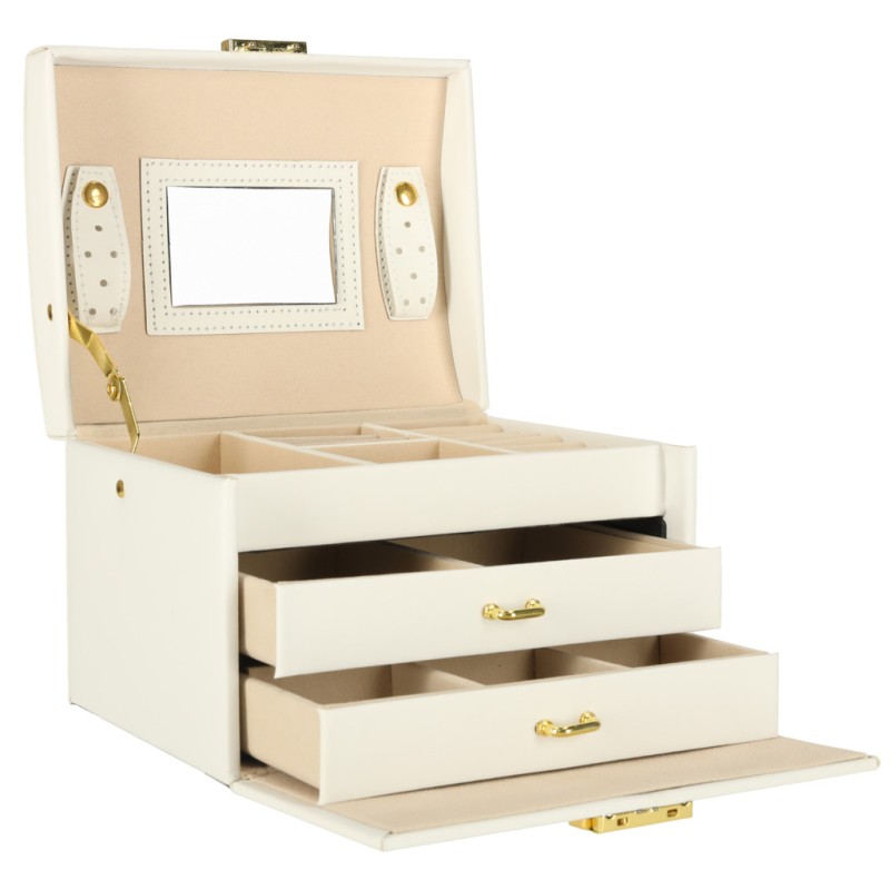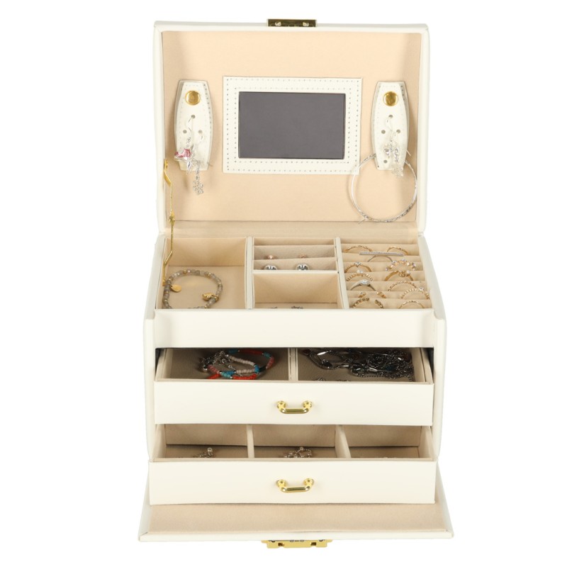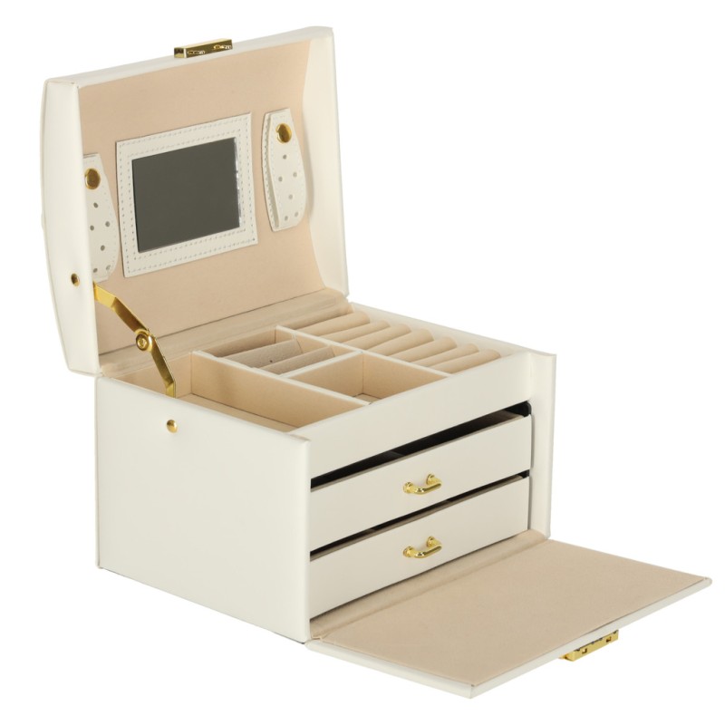 Dzięki wbudowanemu lusterku dobieranie naszyjników czy kolczyków jest niezwykle wygodne - wszystko masz pod ręką, bez konieczności szukania dodatkowego lustra. To stylowa kasetka na biżuterię, która doskonale sprawdzi się podczas codziennego przechowywania biżuterii, a elegancki wygląd sprawi, że będzie ozdobą każdej toaletki.
